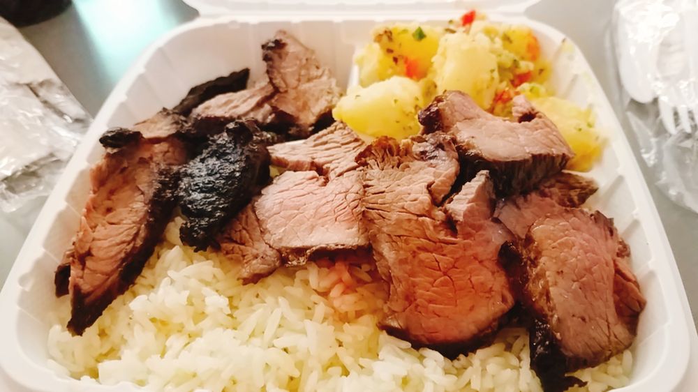Jasmine rice and choice of beans are complimentary with all meals. Send instructions with your meat's temperature and choice of pinto or black beans. Todos os nossos pratos vem acompanhados de arroz e feijao. Mande uma instrucao junto com a ordem, com o ponto da sua carne e tipo de feijao (preto ou pinto).